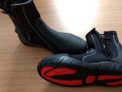 지퍼가 달려있어서 젖은 상태에서 신고 벗기 편하며, 지퍼를 올린 뒤에 스트랩으로 잠글 수 있어