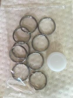 생각보다 좀 크네요. 생수(삼다수) 병두껑 크기랑 비슷합니다. 스테인리스가 아닌 링은 하루만에 엄청난 녹이 생겨서 깜짝 놀랐습니다. 가방이나, 작은 소품들에 사용하려고 구매했습니다. 제품은 뒤틀림이나 벌어짐 없이 깨끗하네요.