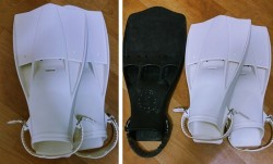 저는 스쿠바프로 제트핀 (XL)를 사용했습니다. 많이 쓰진 않았지만, 그 묵직함에 반해 사용하게 되었습니다. 하지만 확실히 많이 무거운 탓에 킥을 많이 하게 되면 나중에 발목이 많이 아팠습니다. 다른 지인분께서도 나중에 많이 힘들꺼라고 하셨는데, 그 때는 그럴려니 했는데, 오랜만에 다이빙을 한번 했었는데 도저히 사용을 하기 힘들었습니다. 할 때는 괜찮았지만 출수 후 걸을 때도 발목 뒷쪽이 많이 아팠고, 피곤함을 많이 느꼈습니다. 그래서 이번에 핀을 바꾸자는 생각에 구입하게 되었습니다. 정말 끝이 부드럽습니다. 레보핀을 잠깐 사용해보...